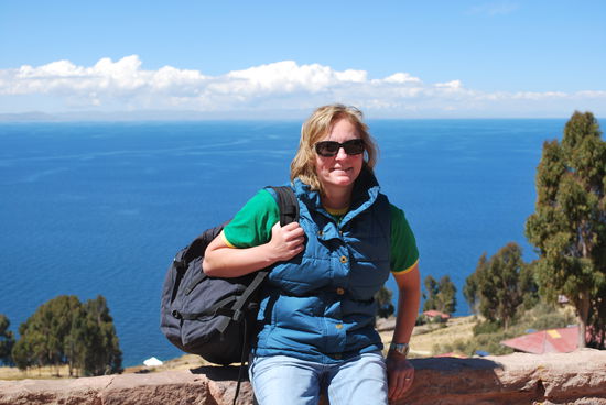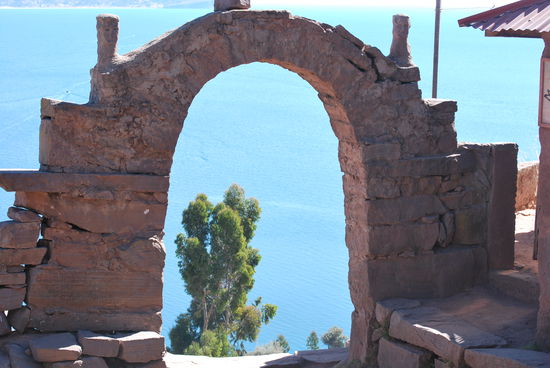 Wir erklimmen die Insel über einen langen, steilen Pfad. Es hört gar nicht wieder auf, immer weiter bergan zu gehen. Meine Güte, irgendwann muss doch mal der Gipfel der Insel erreicht sein ! Ich muss ganz schön pusten in der sauerstoffarmen Luft auf 3800 m Höhe, aber die Ausblicke unterwegs entschädigen für die Mühen !