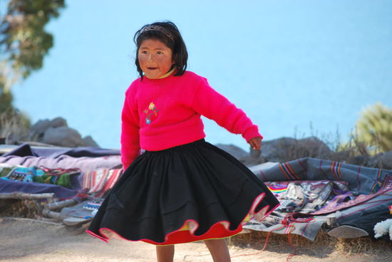 Wir verlassen die Plaza und klettern und wandern noch eine Weile weiter über die Insel, bis wir ein kleines Anwesen erreichen, wo uns ein lunch serviert werden soll. Es gibt super-leckere Forelle aus dem Titicaca-See ! Der unvermeidliche Souvenirverkauf und eine kleine Tanzdarbietung schliessen sich an. Sowas ist ja nicht so mein Ding, aber nun gut, die Leute wollen etwas verdienen und ist ja nett gemeint.