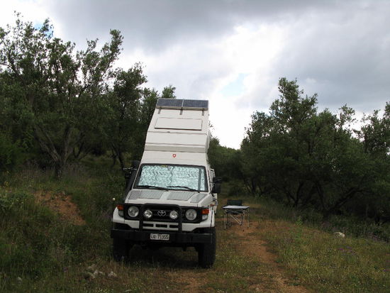 Der Stellplatz in einem Olivenhain , ruhig gelegen! Am andern Morgen weidet eine Schafherde unweit des Nachtplatzes!