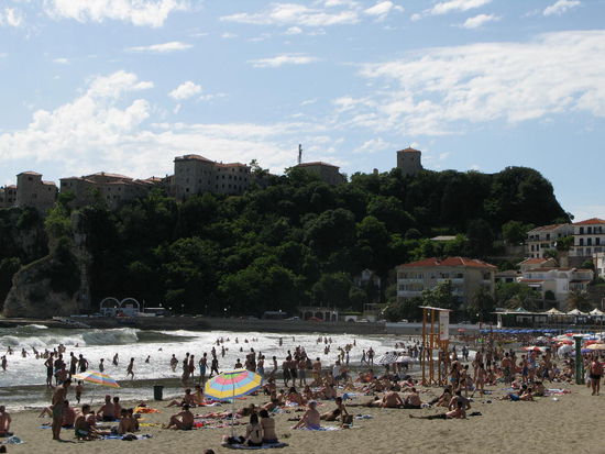 In Ulcinj passieren wir das Städtchen bis zum Strand!