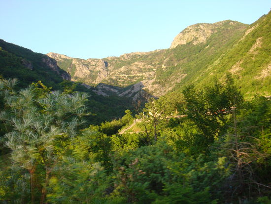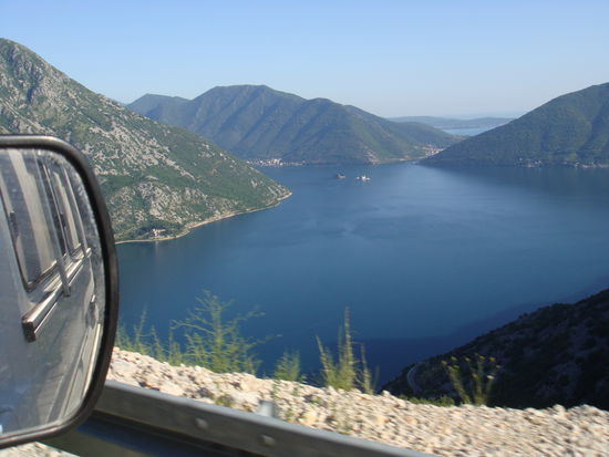 Wir fahren weiter zur Bucht von Risan und suchen die Abzweigung über die Berge in Richtung Bosnien-Herzegowina. Die Anfahrt aus den Bergen nach Dubrovnik (HR) soll überaus reizvoll sein. Die Verzweigung finden wir zuerst nicht, fragen auf der Strasse nach dem Weg! Die auf der Karte eingezeichnete Strasse soll in einem denkbar schlechten Zustand sein, es sei besser, weiterzufahren und die neuerbaute Strasse zu benützen.