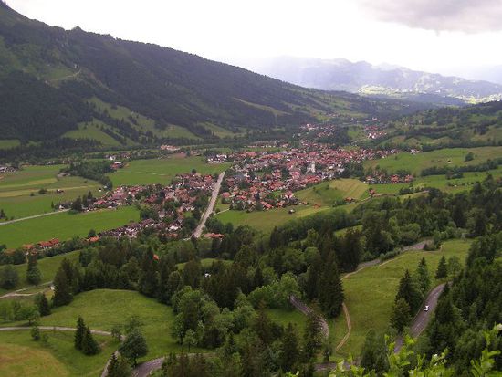 Anschließend ging es dann über eine Serpentinenstraße 7km lang nach Bad Hindelang, wow, was für eine Abfahrt. Nach einem Blick auf den Atlas habe ich mir überlegt, noch bis zur südlichsten Stadt von Deutschland zu fahren, Oberstdorf im Allgäu. Das war dann noch eine gemütliche Tour über Sonthofen, bevor ich dank des wieder guten Wetters nach 101 Kilometern und vielen vertikalen Metern am Stadtrand von Oberstdorf gezeltet habe. Abends habe ich dann noch Oberstdorf mit seinen typischen Allgäu-Häusern besucht.