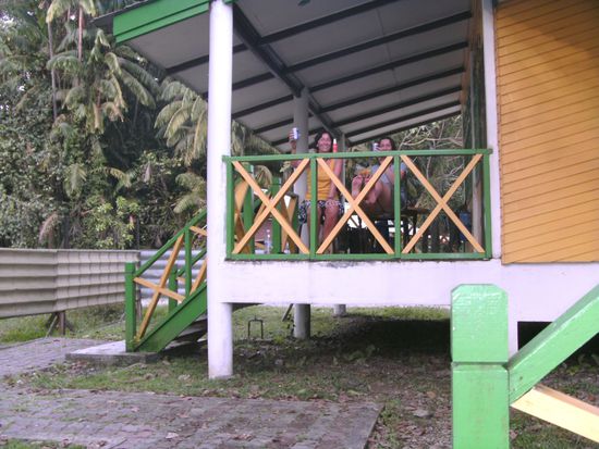 Dort bezogen wir ein schoenes Haus ganz fuer uns alleine und wanderten mal wieder durch den Regenwald. 100 % Luftfeuchtigkeit!!!! Wir sahen nix. Nur das Uebliche, Baeume und so.
