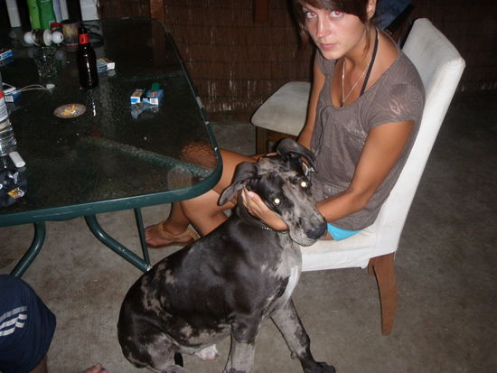 Am Strand trafen wir viele Leute mit Hunden...sooo süß und darunter jemanden mit einem Welpen (Rasse: deutsche Dogge). Ein riesen Hund mit riesen Pfoten...der noch lange nicht ausgewachsen war...mit dem Besitzer haben wir uns angefreundet und sind gemeinsam am nächsten Tag "mal wieder" angeln gewesen. Aber diesmal in einem Fluss...Allerdings ohne Erfolg...wir haben ein paar Fanggeräte für Krebse ausgelegt, aber das war es auch schon...naja, war trotzdem irgendwie spannend...