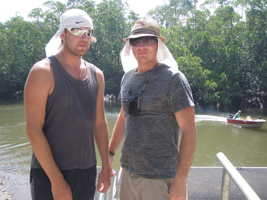 Im Camp haben wir Einwohner von Mission beach kennengelernt. Mit denen ein bisschen gequatscht und gemeinsam was getrunken (moonshine, ein böses Zeug...hab es aber nur probiert...bäähh) und schon war der nächste Tag geplant. Fischen!!! Die Leute besitzen ein Boot und haben uns "eingeladen" (mussten allerdings 45,- Dollar bezahlen für Benzin und Snacks) war aber immernoch sehr günstig. Da meine Jungs sich in Cairns noch extra Angeln gekauft haben, waren die besonders angetan. Ich wollte eigentlich nur mitfahren und auf dem Boot chillen)