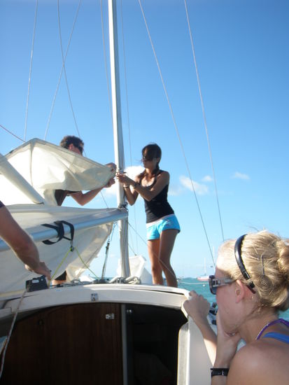 Gegen 17uhr ging es dann los. Es war ein sehr kleines Segelboot und bestand aus einer (incl. uns) 5köpfigen Crew. Das hiess, dass wir auch mithelfen mussten...) Sehr lustig, die Leute die schon geseglt sind wissen was ich meine) Pünktlich zum Sonnenuntergang war das Rennen zu ende. schöööön!!
