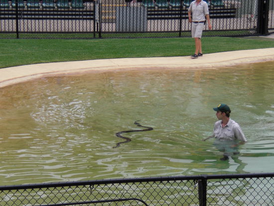 Die Aufmachung des Zoos war beeindruckend und die shows mit Crocs, Schlangen und Voegel unterhaltsam. Leider hatte ich auf meiner bisherigen Reise nicht das Glueck alle typischen australieschen Tiere zu sehen, somit konnte ich das im Zoo vervollstaendigen. Das beste am Zoo waren definitiv das Kangaroogehege. Man konnte die Kangaroos fuettern und streicheln, wie im Streichelzoo Als Andenken wollte ich ein Bild mit einem Koala im Arm...naja, ich bin nicht ganz zufrieden mit meinem Gesichtsausdruck, aber egal...ich hoffe, dass sich meine Eltern trotzdem ueber das Weihnachtsgeschenk gefreut haben