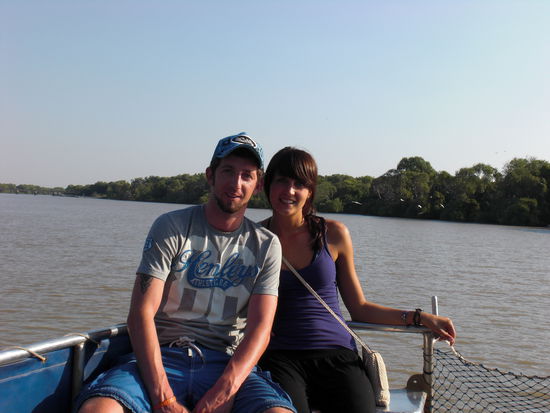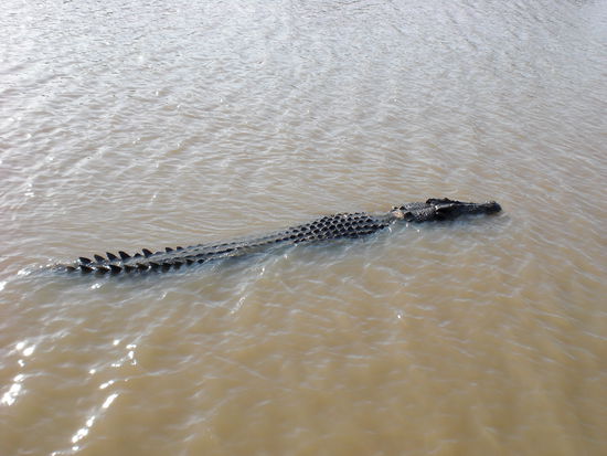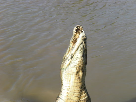 Unser erster Stop auf dem Weg von Darwin nach Cairns war "jumping crocodile" ...da wir sehr spaet dran waren, haben wir die letzte tour um 10min verpasst. wir haben gewartet bis die letzte tour fertig war um den Reisefuehrer zu bequatschen...wir wollten unbedingt crocs sehen....als der moment kam, habe ich meinen traurigsten Blick aufgelegt und gefragt, ob eine winzige Tour fuer uns noch moeglich sei...