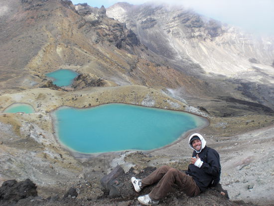Die letzte Steile bestand aus rutschigen Vulkangestein + der starke und eisige Wind war der absolute Horror. In dem Moment konnte ich verstehen, warum die anderen Leute umgekehrt sind und wozu eine Wanderausruestung gut war. Als wir endlich die Spitze erreicht hatten, nach den letzten Strapazen, wurden wir fuer unsere Qualen belohnt. Die Aussicht war traumhaft schoen, die Farben des Vulkaninneren sooo intensiv rot und das allerschoenste waren die tuerkisblauen Seen.