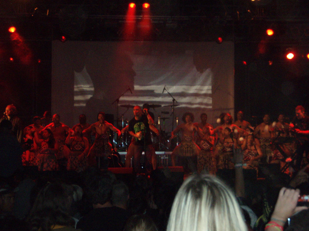 Natuerlich musste das gefeiert werden. An dem Abend gab es ein besonderen Auftritt von Tikitaane & the dub soldiers. Sein Auftritt began als er in eine riesiege Muschel geblasen hat, die einen wunderschoenen Ton von sich gegeben hat. Waehrend dem Auftritt hatte eine grosse Gruppe Maoris einen speziellen Tanzpart gehabt. Es war alles sehr traditionell und besonders.