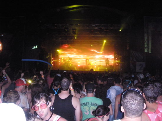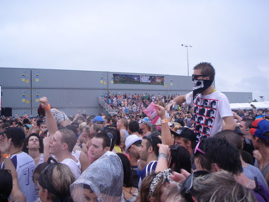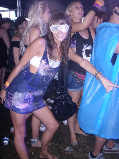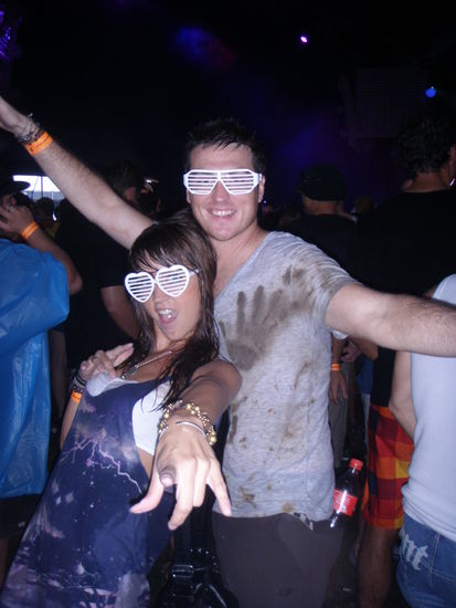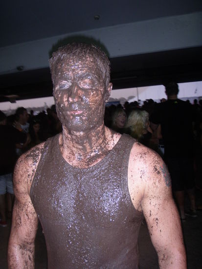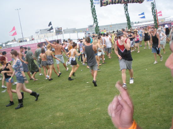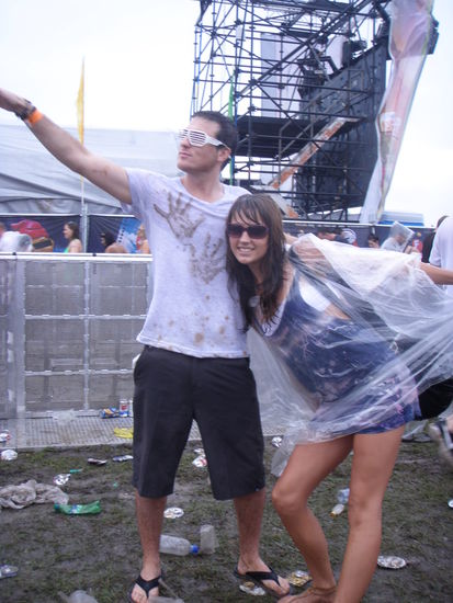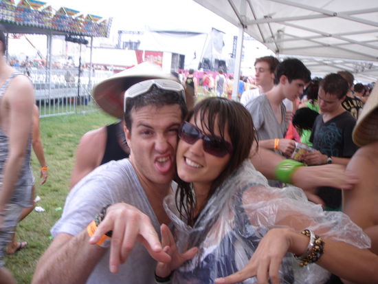 Am Abend davor hatte ich noch abends im portofino gearbeitet, anschliessend feiern gewesen bis 5am, nach 2 Stunden Schlaf wieder auf die Arbeit geschleppt und bis 1pm gearbeitet. Danach ging es schnell heim zum umziehen und vorgluehen...der muedigkeitspunkt wurde durch die ganze aufregung komplett vergessen... gemeinsam mit meinen flatmates und greg ging es ab zum festival. Das Wetter hat leider an dem Tag nicht mitgespielt... ich glaube momentan ist Regenzeit in Brisbane...seit ner Woche dauerregen...Am Anfang war ich noch genervt vom Regen, wollte nicht nass und dreckig werden...doch nach ner Stunde war dann alles egal, man konnte es einfach nicht vermeiden. Es hat einfach nicht aufgehoert zu regnen, mal staerker und mal schwaecher...und der Platz wurde zu einem riesigen Schlammloch. Doch ich muss sagen, dass wir den groessten Spass bei dem Wetter hatten. Die Leute sind komplett ausgeflippt....es gab Schlammschlachten, waelzen im Schlamm, sliden durch schlammpfuetzen, und und und... vor der buehne standen wir mit tausend anderen leute, die mitten im Regen die groesste Party gefeiert haben...unbeschreiblich...