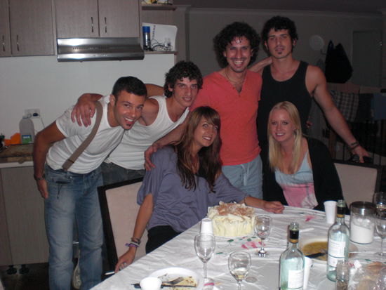 Nachdem wir alles eingekauft haben, konnte der abend beginnen. Meine Freunde und ich haben uns in Davide's Haus getroffen, Fabio hat mir lekka Lasagne und Rouladen mit bluecheese gekocht...dazu gab es einen guten Weisswein und zum Abschluss meine Geburtstagstorte (Tiramisutorte), den Paulo fuer mich gebacken hat. Das Abendessen war unbeschreiblich hervorragend...und konnte mich die naechsten 20Stunden nicht mehr bewegen!!! Von Davide habe ich Champagner geschenkt bekommen Nur das beste vom besten!!!! Ansonsten war es ein sehr lustiger und gemuetlicher abend. Party werde ich am Wochenende nachholen....