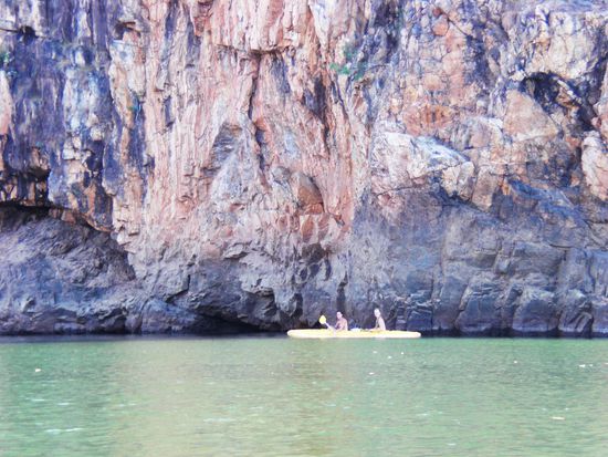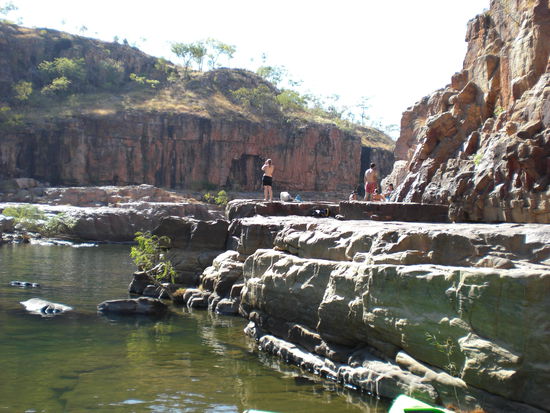 das war einer der schoensten Plaetze bisher die ich gesehen habe. Tja, hat wohl was mit dem Namen zu tun In Katherine gibt es einen wunderschoenen Fluss und Pflicht war eine Kanutour. wir haben eine Tagestour gemacht und konnten den ganzen Tag paddeln und schwimmen. in diesem Fluss leben freshwatercrocs und wir hatten wirklich das Glueck einen zu sehen...juuhuu, bilder folgen. Am letzten Gorge sind wir planschen gegangen und haben die sonne genossen. Auf dem Rueckweg haben wir mit ein paar Leuten noch eine Wasserschlacht veranstaltet. Nach unserer Tour hatte ich schlimmen Muskelkater...baaaeehh..
