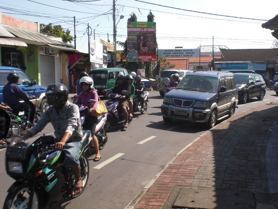 Am nächsten Morgen wollte ich mir einen ersten Eindruck bei Tageslicht von Bali beschaffen. Zu dem Zeitpunkt war ich in Kuta. Das kleine Surfer- und Touristenviertel in Bali. Meine Vorstellung war eine ruhige Insel mit Traumstränden... naja, es entspricht nicht ganz meinen Vorstellungen. Es kam mir vor, als hätte man mich ins kalte Wasser geschmissen. Liegt wohl daran dass ich von Australien komme und andere Bedingungen gewohnt war.