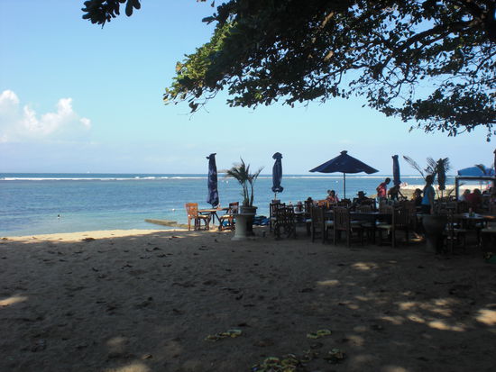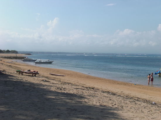 Es ist laut, tausende Rollerfahrere auf den engen Straßen unterwegs. Es gibt keine Verkehrsregeln außer hupen um auf sich aufmerksam zu machen. Es ist viel Armut, dreckig und viele Baustellen. Die Hotels und Restaurants dagegen sind spektakulär und ausgefallen. Viele Verzierungen...einfach außergewöhnlich. Überall auf den Straßen lungern Leute die versuchen dir was zu verkaufen, eine Mitfahrgelegenheit anbieten oder dich einfach nur anquatschen. Besonders als junges europäisches Mädel sehr nervenaufreibend. Am morgen hat es geregnet und das Wetter war nicht besonders schön. Einfach nur schwül und erdrückend, aber ich will mich ja nicht beschweren. Doch ich habe den Entschluss gefasst umzuziehen zu einem anderen Viertel. Nusa Dua soll sehr schön sein und wesentlich ruhiger, doch einer der teuersten Ecke in Bali und noch dazu momentan sehr ausgebucht an Hotels. In meinem Hotel wurde mir Sanur empfohlen. Es ist ruhiger und mehr von Familien besucht. Ich wollte erstmal nur raus aus Kuta. Hab mein Zeug gepackt und ein Taxi gerufen. Nach dem vierten Versuch habe ich endlich ein günstiges Hotel in Sanur, nur 500m vom Strand entfernt, gefunden. Das Wetter wurde besser, das mich dazu überzeugt hat an den Strand zu gehen. Sanur ist so viel schöner als Kuta. Ich bin so froh den Standort gewechselt zu haben. Nach ein paar Stunden sonnenbaden, habe ich mir ein leckeres Mittagessen gegönnt. Das beste in Bali ist, alles ist so günstig. Ich fühle mich schlecht nur 1EUR im Restaurant zu bezahlen. Anschließend bin ich an einem Wellnessgeschäft vorbei gelaufen und hab mich spontan für eine einstündige Vollkörperblumenmassage überreden lassen für ganze 5USD. Man kann es sich hier richtig gut gehen lassen was Wellness angeht. Auch für das Internet bezahlt man eigentlich nichts. Viele Restaurants bieten free WIFI an, aber zum skypen muss ich in ein Internetcafe mit schnelleren und besseren Internetverbindung. Doch selbst dann zahl ich kein Dollar die Stunde.