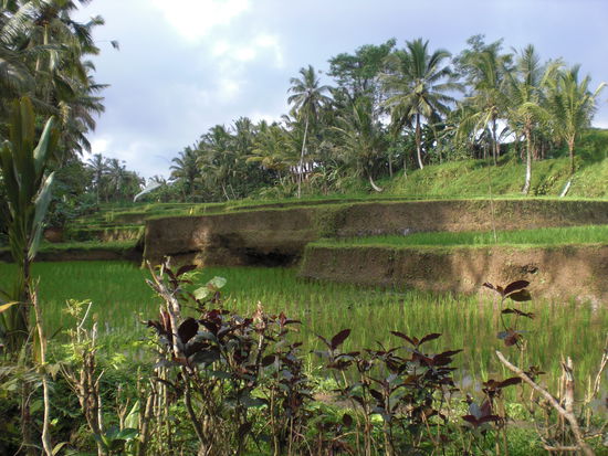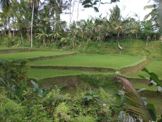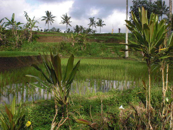 Danach ging es zurück nach Sanur und auf dem Weg dorthin, sind wir an den Reisfeldern vorbei gefahren. Der Reis wird für ca. 3 Monate angebaut. Qualitätsreis sogar für 6 Monate. Die Felder sind in den ersten Monaten mit Wasser überflutet, wie man an den Bildern vielleicht erkennen kann. Die Sträucher werden bis zu einem halben Meter hoch, dann werden sie geschnitten.