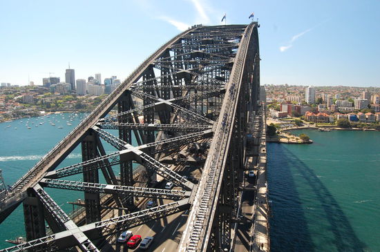Und jetzt gings los...ab auf die Harbour Bridge. Man ist die hoch, nicht wirklich was für mich. Aber das musste ich durch und immer schön links gehen weit weg vom "Abgrund". Dafür ist die Aussicht genial. Es dauert so ca. 15 Minuten bis man rüber ist. Auf er anderen Seite konnten wir noch super tolle Bilder machen mit einem Ausblick der seinesgleichen sucht.... Seht selbst....