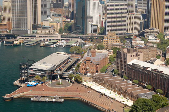 ach der Brücke sind wir durch "the Rocks", ein Viertel am Circular Quai mit einem Löwenbräu Keller inkl. German Oktoberfest und Weißbier. Sind wir aber nur mal rein auf Toilette und dann weiter. Ne Karte für die Fähre gekauft nach Darling Habour.