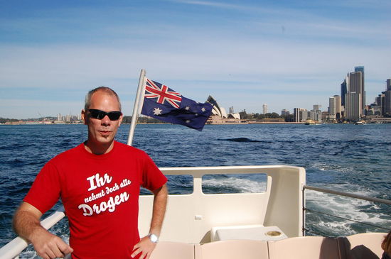 Dafür sind wir dann am nächsten Morgen schon um 8.30h aufgestanden. Frühstück im 7eleven und auf Richtugn Harbour Bridge. Auf dem Weg dorthin noch Richard Branson (das ist der von Virgin) getroffen. Hat in der Nähe der Brücke ne neue Kneipe eröffnet ("the Brit"...wird wohl ne Kette werden...).