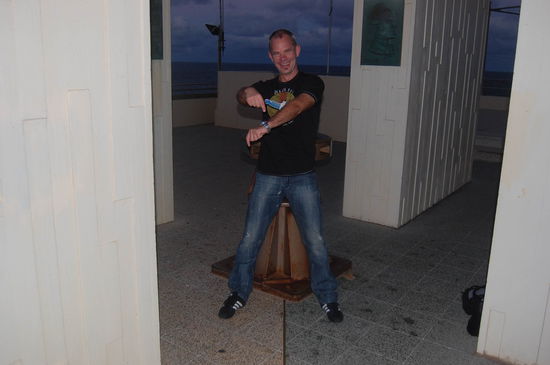 Coolangatta hat eine Besonderheit. Da die Stadt inzwischen mit der Nachbarstadt Tweed Heads zusammengewachsen ist, die beiden Teile aber in unterschiedlichen Staaten sind (Queensland und New South Wales) läuft die Staatengrenze mitten durch den Ort. Und es wird noch besser... Der südlichere Staat, New South Wales, hat am letzten Wochenende auf die Sommerzeit umgestellt. D.h. es gibt ne Stunde Zeitunterschied zwischen den beiden Staaten. Gut dass meine Uhr noch in Queensland ist und richtig geht (der Strich auf dem Boden ist die Grenze....)