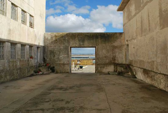 . Innenhof der Fortaleza von Peniche, welches während des "Estado de Nova" ein gefurchtes Gefängnis aus im gelang Alvaro Cunhal die Spektakulär flucht.Jetzt dient es als Heimatmuseum und beherbergt ein Ausstellung zum Widerstand gegen das Regime von Salazar