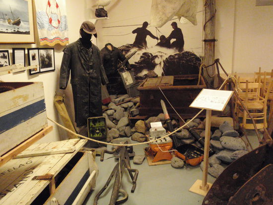 Ich bin natürlich auch noch einige "Pflichtrote" angefahren, in den Westfjorden unter anderem den Latrabjarg, dem wohl bekanntesten Vogelfelsen in Island. Bis auf die Möwen haben sich, wie erwarte, die andern Vögel in den Winterurlaub verzogen. Aber auch so empfand ich diese Kulisse nicht ganz so spektakulär, vermutlich weil eben dieser Ort wieder zu den angepriesen gehört und dann die Erwartung hoch sind. Ein Bucht weiter hat es mir bedeuten besser gefallen und in dieser befand sich außer mir keinen Mensch, klar Schafe dafür um so mehr. Was ich Euch noch erwähnen möchte ist das kleine Heimatmuseum in Hnjotu wenige Kilometer von Latravik entfernt. Neben vielen interessanten Dinge die dort ausgestellt werden, ist die dramatisch Rettungsaktion der Besatzung von zwei 1947 und 1948 gestrandeten britischen Fischereischiffen dokumentiert. Auf Wunsch wird ein Film in deutscher oder isländischer Sprache über diese Rettungsaktion gezeigt, den die isländische Seerettung zusammen mit der Deutschen Gesellschaft zur Rettung Schiffbrüchiger erstellt hat. Er zeigt wie die Besatzung mit Hilfe einer Hosenboje über die Klippen abgeborgen wird. Für alle Seekajaker; der Film endet mit einem kurzen Bericht über Spiekeroog und in dem Museum hängen drei "Zuckersäcke" von der Decke.