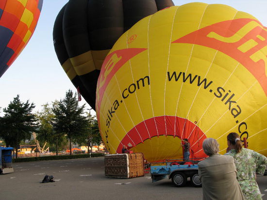 Morgens um sechs Uhr ist Treffpunkt beim Fussballstadion Allmend in Luzern. 3 Ballone steigen auf, doch zuerst braucht es die notwendigen Vorbereitungen!
