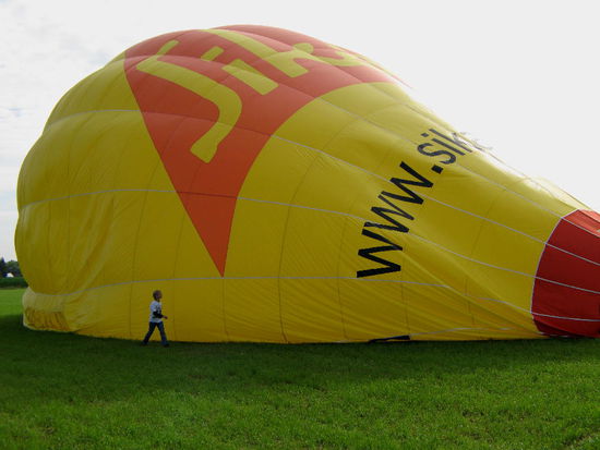wir sind in Emmen, etwas nördlich des Militärflugplatzes gelandet. Das Begleitfahrzeug ist da, der Korb bereits wieder auf dem Hänger verladen... Noch gilt es aufzuräumen - und alle sind um ein herrliches Ereignis reicher
