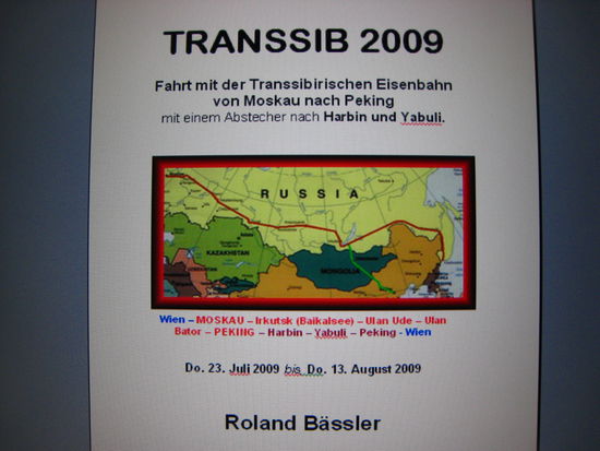 Mit der Transsibirischen Eisenbahn geht es zuerst von Moskau (RUSSLAND) nach Irkutsk (Sibirien), dann mit Bahn, Schiff und Bus eine Woche "rund" um und auf dem Baikalsee, bis nach Ulan Ude. Die Reise führt weiter mit der Transmongolischen Eisenbahn durch die Wüste Gobi bis Ulan Bator (MONGOLEI) und dann nach Peking (Beijing)(CHINA). Ein Abstecher nach Nordchina, nach Harbin und Yabuli, wird geplant.