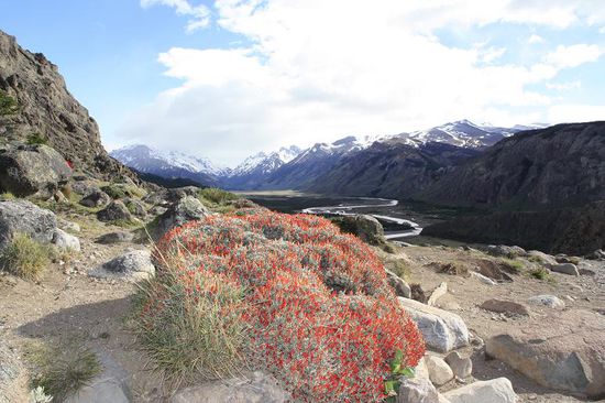 Abends setzten wir ueber zum noerdliche Teil des Nationalparkes nach El Chalten. Dieses ist eine noch junge Siedlung mit guten Wandermoeglichkeiten. Unser Hostalbetreiber begruesste uns mit: "Herzlich Willkommen in der Hauptstadt des Wanderns und des Windes." Dieser Wind schien ihn auch dazu inspierert zu haben das Zimmer auf 35 Grad zu heizen. Leider konnte man die Fenster nicht oeffnen, wegen dem Wind.Wir hatten zwei Tage zum Wandern eingeplant. Der erste Ausflug wurde mit echtem Bergwetter verschoent. Eigentlich war alles dabei, Sonne, Regen, Schnee und natuerlich Wind. So erklommen wir trotz gutem Training unter Muehen den Aussichtspunkt des Fitz Roys, einem der imposantesten Berge der Umgebung. Wir erblickten von dort glasklar die schneeweissen Wolken vor der Bergkuppe, aber die Lagune war schoen anzusehen.