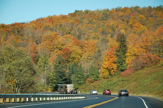 Auf dem Highway 103 verlassen wir Chester und gelangen auf den grossen Freeway 91. Nach 21 Meilen verlassen wir diesen in Brattleboro und fahren westwärts weiter auf dem Highway 9, der uns stetig in die Höhe führt. Hatten wir geglaubt, dass wir den Höhepunkt des Foliages bereits gesehen haben, werden wir plötzlich eines besseren belehrt.