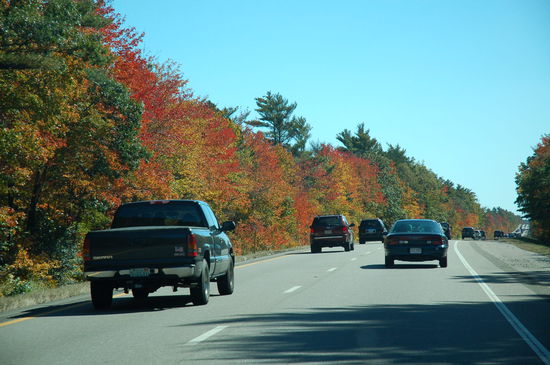 Das Wetter ist wiederum strahlend schön! Wir haben die weiteste Strecke unserer Ferien vor uns! Auf dem Highway 103 fahren wir wiederum aus Chester hinaus und zum Freeway 91, wo wir in stockdicken Nebel geraten! Nach 30 Meilen verlassen wir den Freeway und biegen ab auf den Highway 2 ostwärts, welcher uns wieder in den Sonnenschein zurück bringt. Es geht Richtung Boston. Der Verkehr nimmt immer mehr zu und uns schwant böses: es ist Columbus Day Weekend und wir fahren in eines der beliebtesten Feriengebiete der Ostküste nach Cape Cod. Gotthardstau auf amerikanisch lässt grüssen!