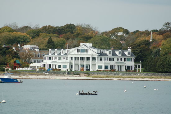 Draussen auf dem Nantucket Sound fahren wir auf die Höhe von Hyannis Port, wo wir herrliche Villen erblicken. Zuvorderst am Strand fällt ein schneeweißes Haus mit hohen Säulen auf. Es gehört Senator Edward Kennedy. Daneben erblicken wir ein schönes Haus mit drei Giebeln, das anscheinend 1929 von Joseph und Rose Kennedy gebaut wurde. Auch Robert und John F. Kennedy bauten in Hyannis Port ihre Sommerhäuser, so dass man wirklich von einem Dorf sprechen kann, das ganz im Besitz der best bekannten Familie Amerikas ist. Das Haus von John F. Kennedy war übrigens in den frühen 60er Jahren die Basis für die Präsidentenkampagne. Leider liegt das Haus ziemlich versteckt hinter hohen Bäumen. Oben auf einem Hügel erblicken wir dafür noch das Sommerhaus der Shrivers. Da dürften Maria Shriver und ihr Terminator auch des öftern ihre Ferien geniessen.