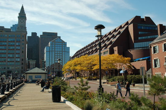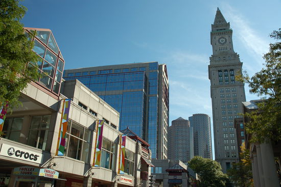 Wir spazieren in die Innenstadt, in das so genannte Colonial Boston. Es ist das historische Zentrum der Stadt, welches auf die Kolonialzeit zurückgeht. Heute wird das Viertel durch moderne Bauten aus dem 19. Und 20. Jahrhundert beherrscht, aber noch immer ist das Flair durch koloniales Erbe bestimmt. Man sieht dies am Old State House, an der King's Chapel mit dem alten Friedhof sowie dem Old South Meeting House. Heute befindet sich hier auch das Finanzzentrum Bostons. Natürlich gehören die imposantesten Wolkenkratzer zum Bankenviertel.