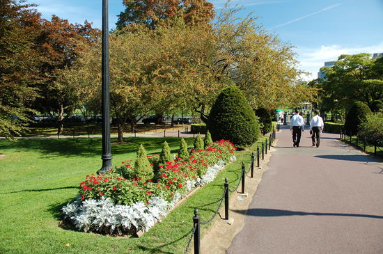 Der neun Hektar grosse Boston Common wurde 1634 von einem der ersten Siedler gekauft und diente zwei Jahrhunderte lang als öffentliche Grünfläche, Exerzierplatz und Galgenstätte. Bei der Besetzung 1775/76 lagerten hier britische Truppen. Als Boston im 19. Jahrhundert wuchs, wurde der Boston Common zur wichtigsten Park- und Erholungsfläche. Der Park besteht aus zwei Teilen: Dem eben erwähnten neun Hektar grossen Boston Common und dem 10 Hektar grossen Public Garden, getrennt durch die Charles Street. Der Public Garden ist parkähnlicher. Man entschied sich 1869 daraus einen englischen Garten zu machen.