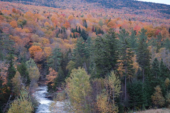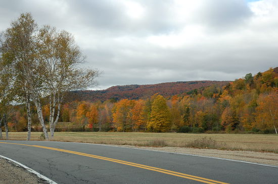 Unser Rundkurs führt uns um verschiedene Seen. Von Oquossoc geht der Highway nördlich am Lake Mooselookmeguntic vorbei und irgendwann streifen wir das nördliche Ende des Richardson Lakes. Die Gegend ist wirklich zum Schreien einsam! Das Fortschreiten des Indian Summers ist sehr unterschiedlich. An gewissen Orten scheinen wir mitten in der Blüte der herbstlichen Orgie zu sein und an andern hält schon langsam der Winter Einzug, sprich die Bäume sind bereits kahl. Ab und zu machen wir einen Halt um die reine, klare Luft einzuatmen, uns ein wenig die Füsse zu vertreten und natürlich Fotos von der herrlichen Landschaft zu schiessen.