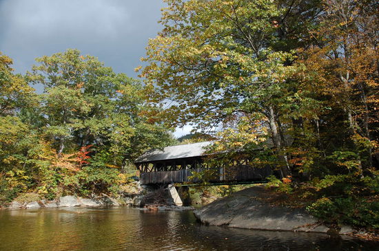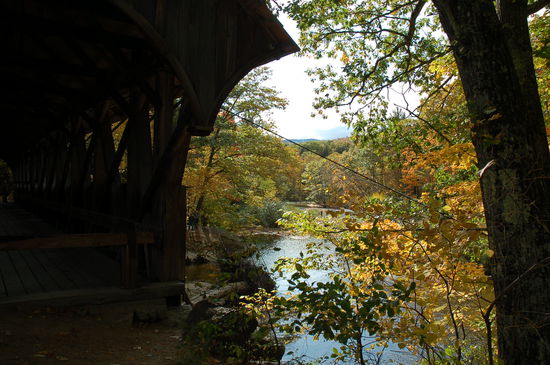 Plötzlich erblicke ich Schild das die Abzweigung zu einer "Covered Bridge" zeigt. Die gedeckten Brücken sind in den Neuengland Staaten ein Muss. Vorallem seit dem Film "the bridges of Madison County" mit Merryl Streep und Clint Eastwood. Wer hat bei diesem romantischen Film keine Tränen verdrückt... Also haftet nun etwas absolut Romantisches an diesen Gebilden, und die wollen wir uns natürlich nicht entgehen lassen!