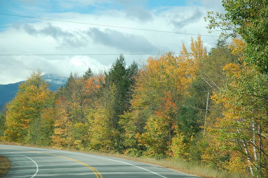 Nun, durch tiefe Täler fahren wir durch unsere wunderschönen Herbstwälder, die farbenfroh dem "Peak" der Saison zusteuern. Linker- und rechterhand erheben sich die eindrucksvolle, verschneite Gipfel und plötzlich stehen wir am Fusse des höchsten Berges, dem Mount Washington. Ein riesiger Parkplatz mit einer ebenso riesigen Lodge wartet auf Besucher. Rund um uns dominieren die herrlichsten Herbstfarben, die man sich vorstellen kann, vornehmlich in Rot und Orange. Es ist der schlichte Wahnsinn und übertrifft alles, was wir bisher gesehen haben.