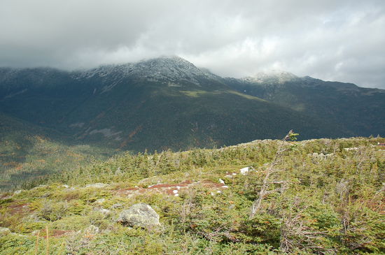 Wie schon mal erwähnt, habe ich vor unserer Abreise das Buch "Picknick mit Bären" von Bill Bryson gelesen, welches seine Abenteuer auf dem Appalachian Trail beschreibt. Dieser Trail führt mitten über die Gipfel der Presidential Range. 1200 bis 1900 Meter über Meer scheint uns bescheidene Höhen. Doch das Gebiet weist eine gefährliche Eigenheit auf: Oftmals treffen sich hier die arktische Luft aus dem Norden Kanadas und die tropische Luft aus dem Süden und veranstaltet eine Wetterküche, die sich gewaschen hat. Die Wetterumschwünge sind legendär und haben schon manchem Wanderer das Leben gekostet. Ich möchte aus dem Buch von Bill Bryson das Kapitel über den Mount Washington wiedergeben, das in etwa die Naturgewalt zeigt, wovor wir nun stehen: