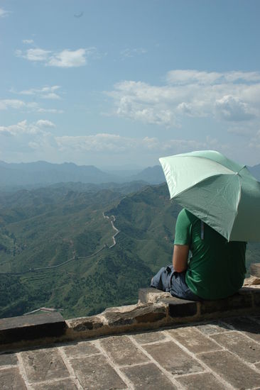 Mein Verband war sogar so gut, dass wir am dritten Tag schon die chinesische Mauer besteigen konnten. Um die zu besuchen haben wir eine etwas entferntere Stelle ausgesucht (Simatai), ein wenig abseits der grossteils unglaublichen chinesischen (also einheimischen) Touristenstroeme. Selbst organisiert mit oeffentlichem Bus nach Miyun (kleine Stadt) und dort nach zaehen Verhandlungen mit einer Gruppe (!!) von chinesischen Fahrern nach Simatai. Der Fahrer war dann echt nett, hat uns nicht abgezockt (sehr verwunderlich nach unserer Indienreise) und hat uns sogar Wasser und Zigaretten geschenkt. Das Ergebnis war ein sehr spektakulaerer steiler Teil der Mauer fuer uns mit einer Hand voll anderer Besucher. Sehr sehr beeindruckend.