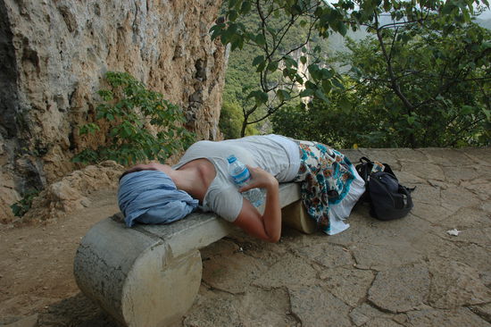 Ja, nach dem Hotelwechsel haben wir uns Fahrraeder ausgeborgt (ich war wieder gesund) und sind bei bruetender Hitze und unmenschlicher Luftfeuchtigkeit zum Moonhill geradelt und haben diesen bestiegen. Wunderschoene Aussicht dort oben. Allerdings war nun Julia etwas schwach auf den Beinen.