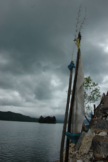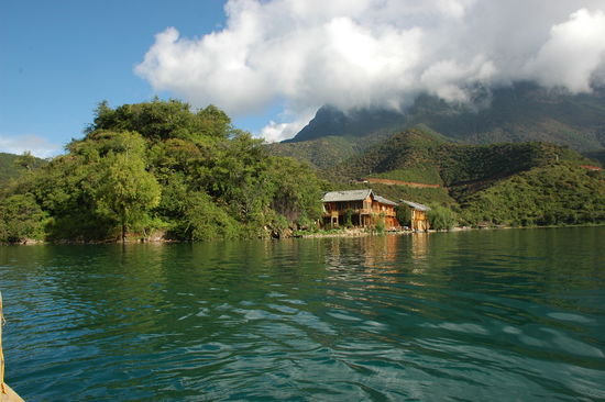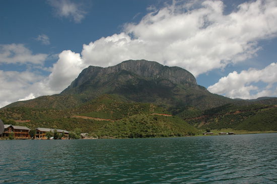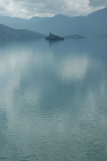 Wir hatten grosses Glueck mit dem Wetter. Ausnahmsweise war der Himmel strahlend blau. Unsere beiden Ruderinnen waren einheimische Mousu- Frauen. Die Mousu sind eine weitere chinesische Minderheit, sehr aehnlich den Naxi. Sie haben uns zu 2 Inseln im See gebracht und dabei Mousu-Volkslieder gesungen. Dabei faellt mir ein das chinesen generell sehr, sehr viel singen. Die beiden waren aber ausnahmsweise gut