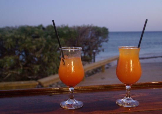 Wir meldeten uns für morgen an, um mit dem Glasbodenboot zu fahren. Ist in dem Inselpaket mit drin! Genauso wie unser Willkommenstrunk, den wir mit Blick aufs Meer genossen.
