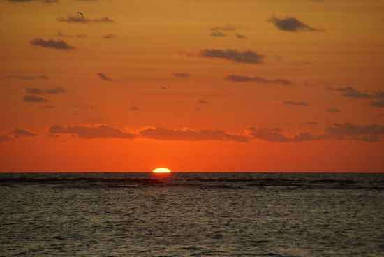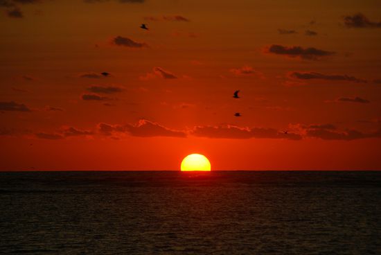 Es ist Sonnenaufgang und alle Seevögel wieder retour aufs Meer....