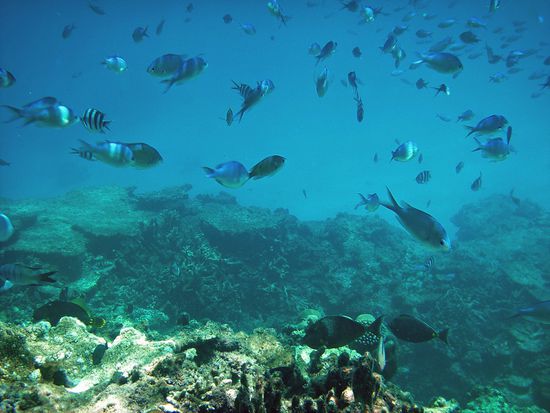 Wir fuhren etwas weiter raus zu einem Riff und konnten dann schnorcheln "gehen". Hier sahen wir auch endlich die großen Meeresschildkröten, die demnächst ihre Eier am Strand ablegen werden.
