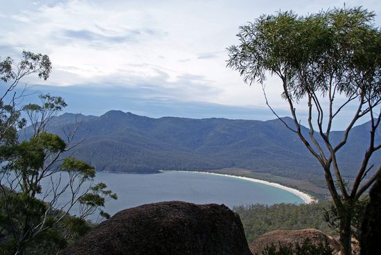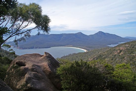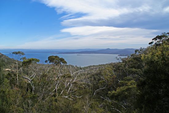 Der erste Zielpunkt hiess Wineglass Bay Lookout, schön bergan, durch tolle Natur und immer wieder super Ausblicke auf andere Bays.