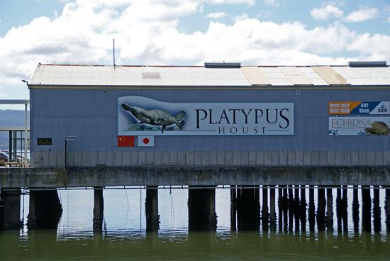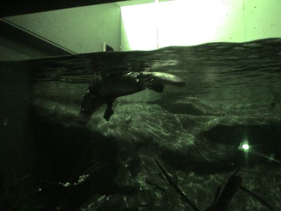 Dann fuhren wir zu einem Platypushaus, in der Hoffnung, hier mal ein ordentliches Foto des Schnabeltieres hinzubekommen. Aber wie ihr seht, ist es uns nicht gelungen. Zu dunkel und das "Viech" ist zu schnell!