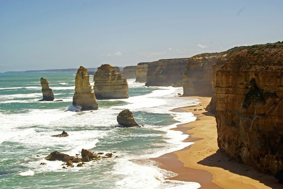 Dann folgte das Highlight, welches jeder Tourist sehen will - die 12 Apostel! Einige Felsformationen im Meer. Nachdem ein großer Fels 2005 umgefallen ist, sehen sie heute so aus: