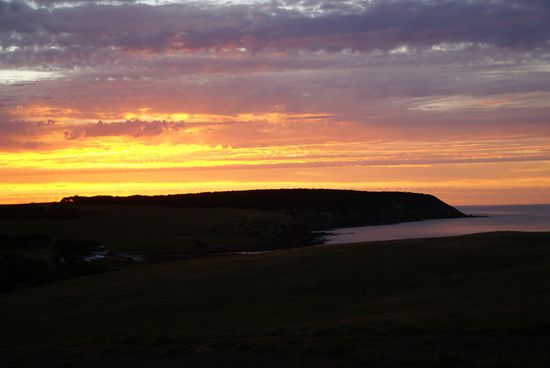 Nun gut, wir hatten das selbe Auto wie auf Tasmanien, wir fuhren los. Unser Cottage liegt im Norden, oben auf den Klippen, Exclusivblick auf den Hausstrand, einer der beiden sicheren.