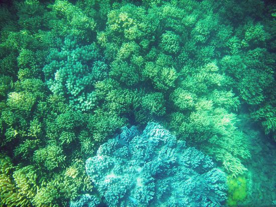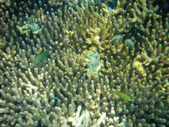 Kaum da, stürzten wir uns in die Fluten. Zuerst sahen wir leider schon sehr viel zerstörtes Riff, weiter draußen wurde es aber besser. Was für schöne Korallenformationen und die vielen bunten Fischlein erst! Ich könnte das stundenlang machen, einfach nur traumhaft!